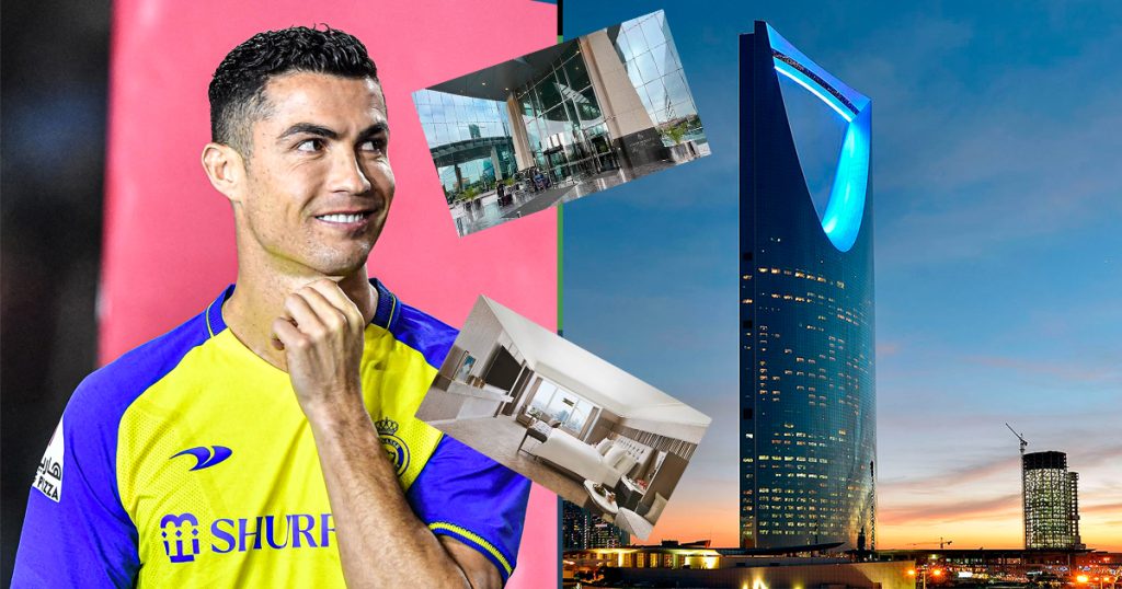 El futbolista Cristiano Ronaldo, tras su fichaje por el Al Nassr de Arabia Saudí, se alojará en Riad en el exclusivo hotel Kingdom Tower hasta comprarse su mansión. La suite Kingdom, según informan los medios británicos, se extiende entre los pisos 48 y 50 del hotel. #VIVOplay pic.twitter.com/ULuGxdMUDX
