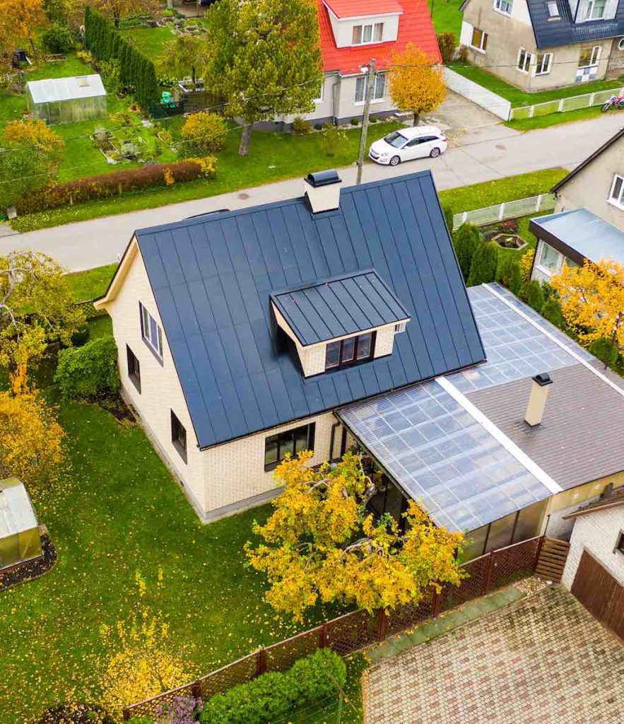 Un techo de metal con junta alzada es un tipo de sistema de techo que consta de paneles verticales largos con costuras elevadas que se entrelazan para crear un sello impermeable. Este tipo de techo se utiliza a menudo en edificios comerciales e industriales, así como en edificios residenciales.