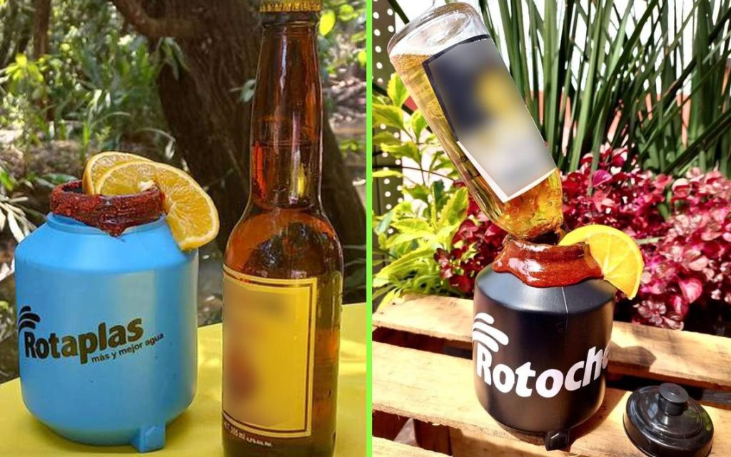 El ingenio mexicano está a la orden del día y luego de la invención de las Licuachelas, la bebida ha ampliado su presentación ahora con recipientes a escala de una reconocida marca de tinacos, de ahí el origen de su nombre: Rotochelas.