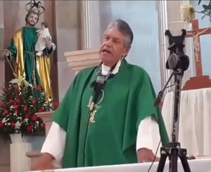 El video del fragmento del sermón de dicho sacerdote, menciona que el que oficia la misa es conocido entre los feligreses como el ‘Padre pistola‘ ya que se presenta armado.