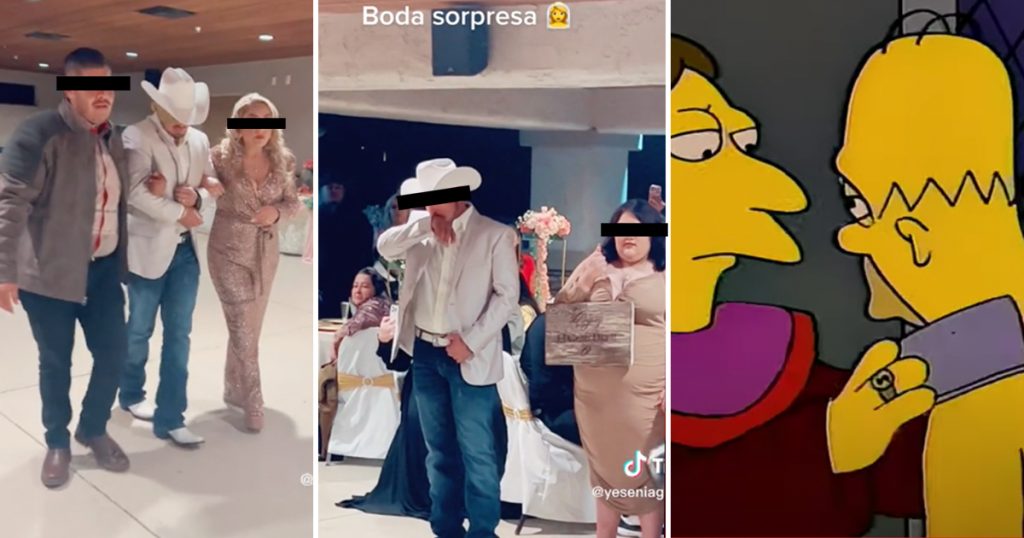 La escena fue subida a la red TikTok por la usuaria Yesenia Gómez, en donde se muestra como el inadvertido sujeto llega al salón luego de haber sido mandado “por la comida” y al llegar encontró todo muy montado para que se realizara la boda.