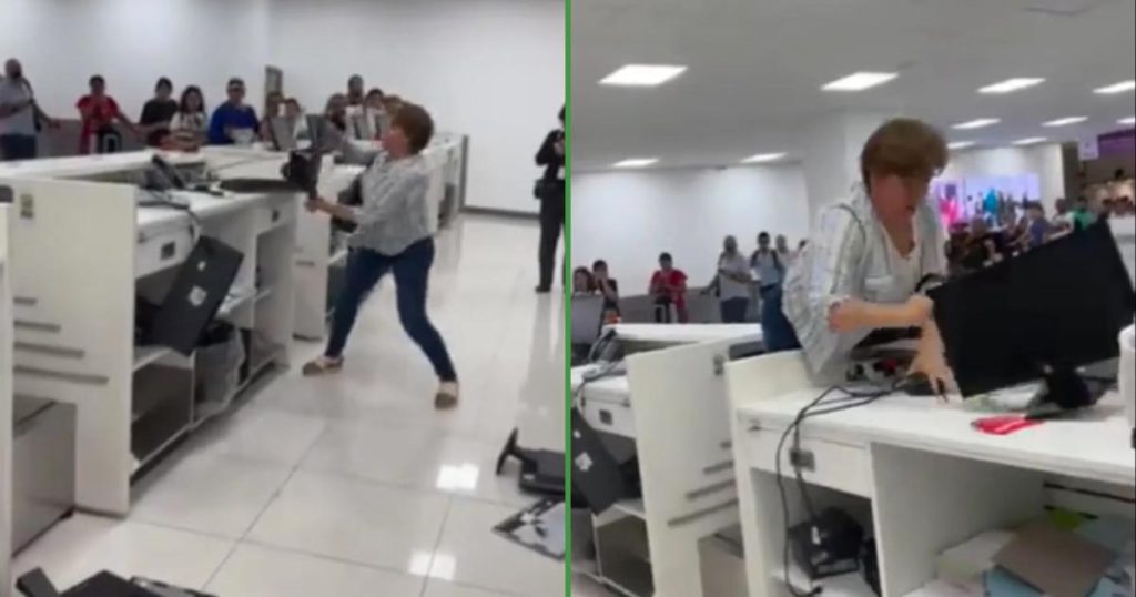Los hechos ocurrieron en el mostrador de la aerolínea (presumiblemente) de Volaris, cuando una mujer empezó a destrozar el mobiliario sin que hubiera poder humano o divino que la hiciera entrar en razón.