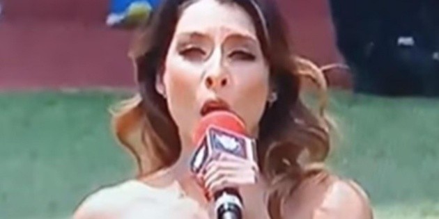 La cantante de Jalisco cometió un error en la primera estrofa. En lugar de continuar con el verso «Por el dedo de Dios se escribió», dijo «un soldado de Dios se escribió».