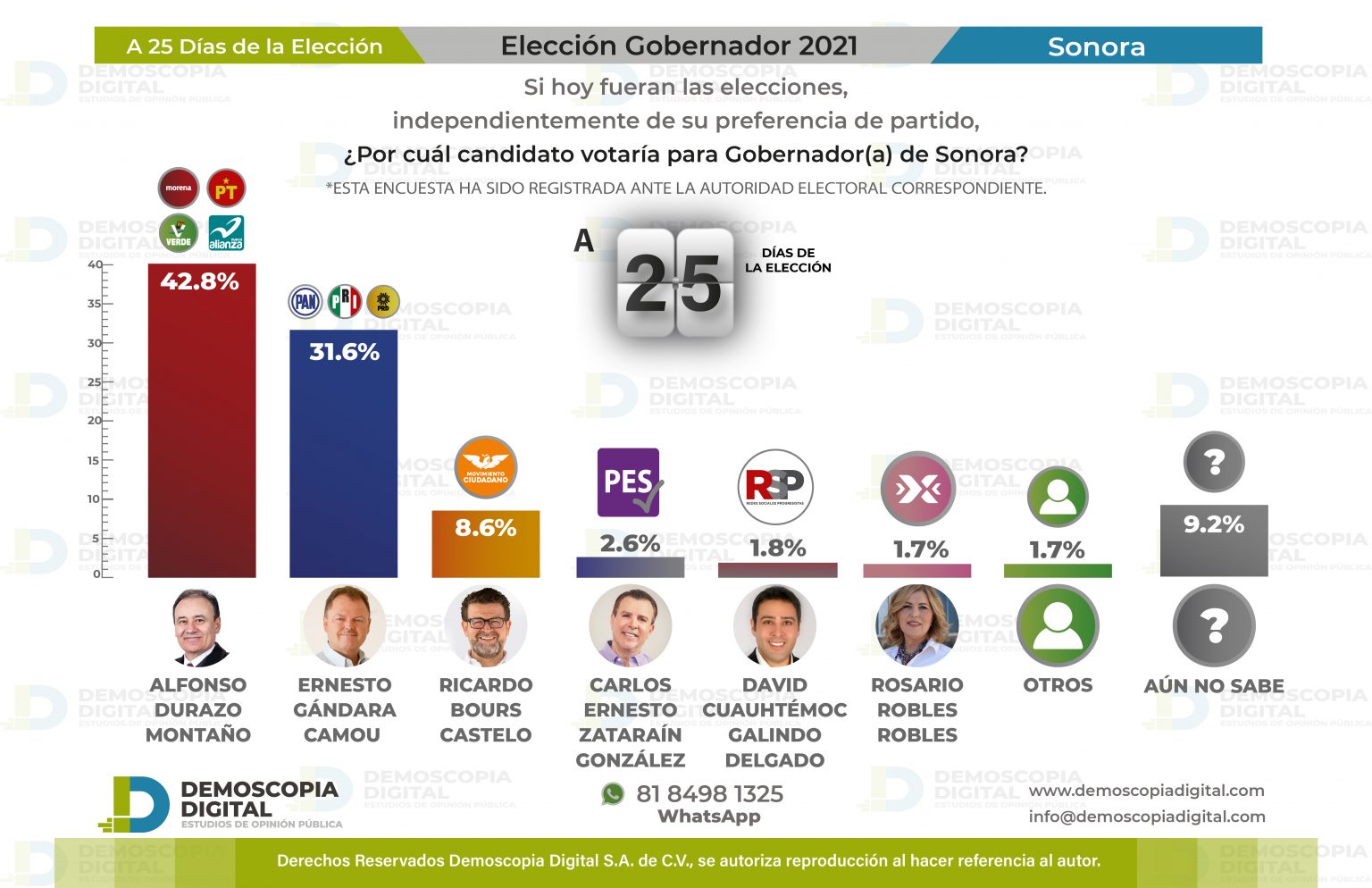 • Se mantiene Alfonso Durazo como el favorito para ganar la gubernatura, según reportes de encuestas