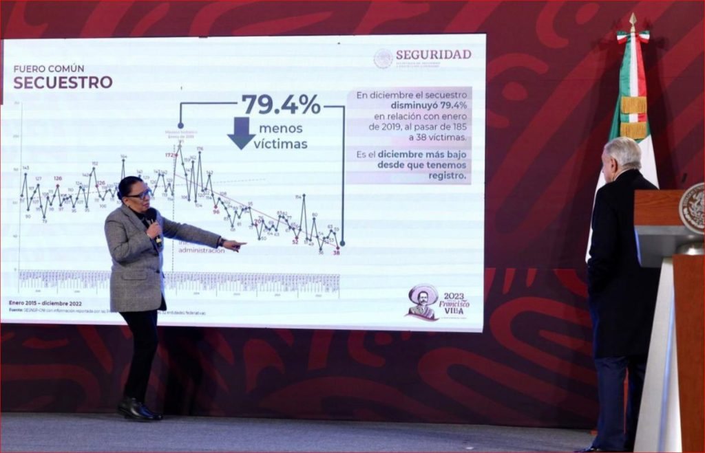 También presentó un análisis del promedio de homicidios dolosos por sexenio basado en datos del Instituto Nacional de Estadística y Geografía (INEGI) y del Secretariado Ejecutivo del Sistema Nacional de Seguridad Pública; en el periodo de 1990 a diciembre de 2022 resalta la disminución del 10.8 por ciento de variación total en este gobierno.