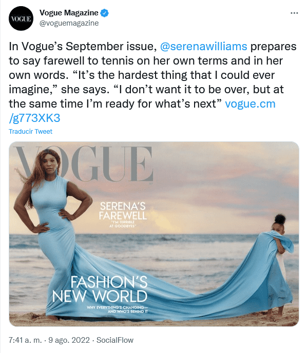 En una emotiva carta escrita en primera persona para la revista Vogue, la ganadora de 23 títulos de Grand Slam insinúa que el US Open 2022 será el último de su carrera.