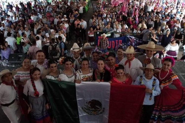 El cierre regional de Claudia Sheinbaum contó con la asistencia de simpatizantes de estados como Aguascalientes, Michoacán, Colima, Nayarit y Guanajuato, quienes disfrutaron, en la explanada del Instituto Cultural Cabañas, de las danzas folklóricas de la región occidente del país.