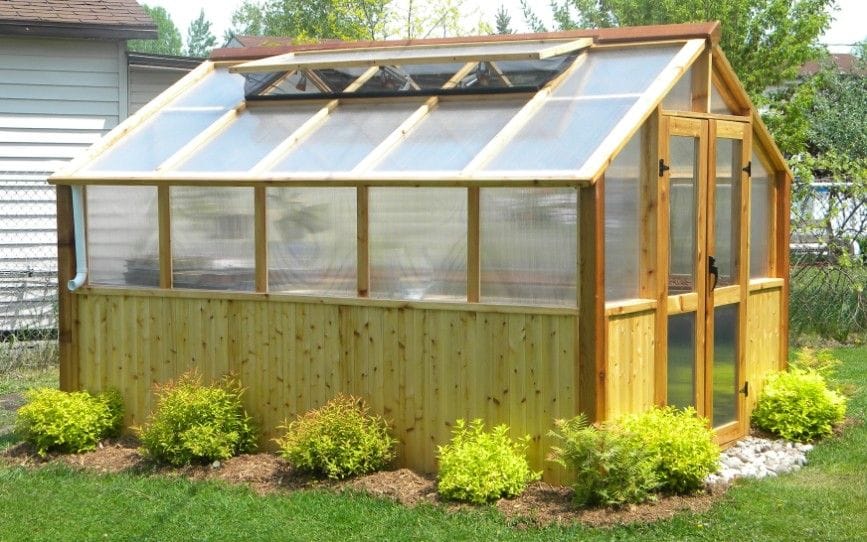 Un invernadero acuapónico te permite cultivar frutas y verduras durante todo el año en un entorno de madera sostenible.