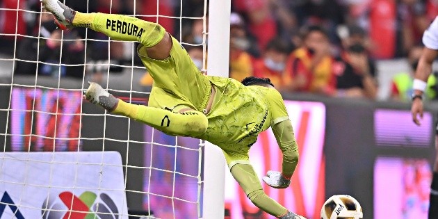 En la imagen se ve a Vargas atajar el tiro a Luis Montes, del León, y luego se aleja de la portería para permitir que se acercara el arquero Rodolfo Cota para enfrentarse al delantero de Atlas Julio Furch. El partido de vuelta de la final del Torneo Apertura 2021 llegó hasta la tanda de penales, y ese se convertiría en el quinto para los rojinegros.