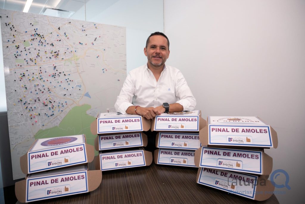 “¿Qué es lo que hacemos en Distrito Digital? De entrada les hacemos su logotipo, una imagen que se vea fresca, corporativa, elegante, bonita, para que a los potenciales clientes les den ganas de comprar el producto o servicio. Después, los subimos a los buscadores para que la gente los encuentre y les damos unas tarjetas para que las puedan subir a las redes sociales y aparezca el negocio con su logotipo y con una descripción de lo que ofrece, así como con los precios de sus productos. Hemos metido 700 negocios a la era digital, a la era de las ventas en línea”.