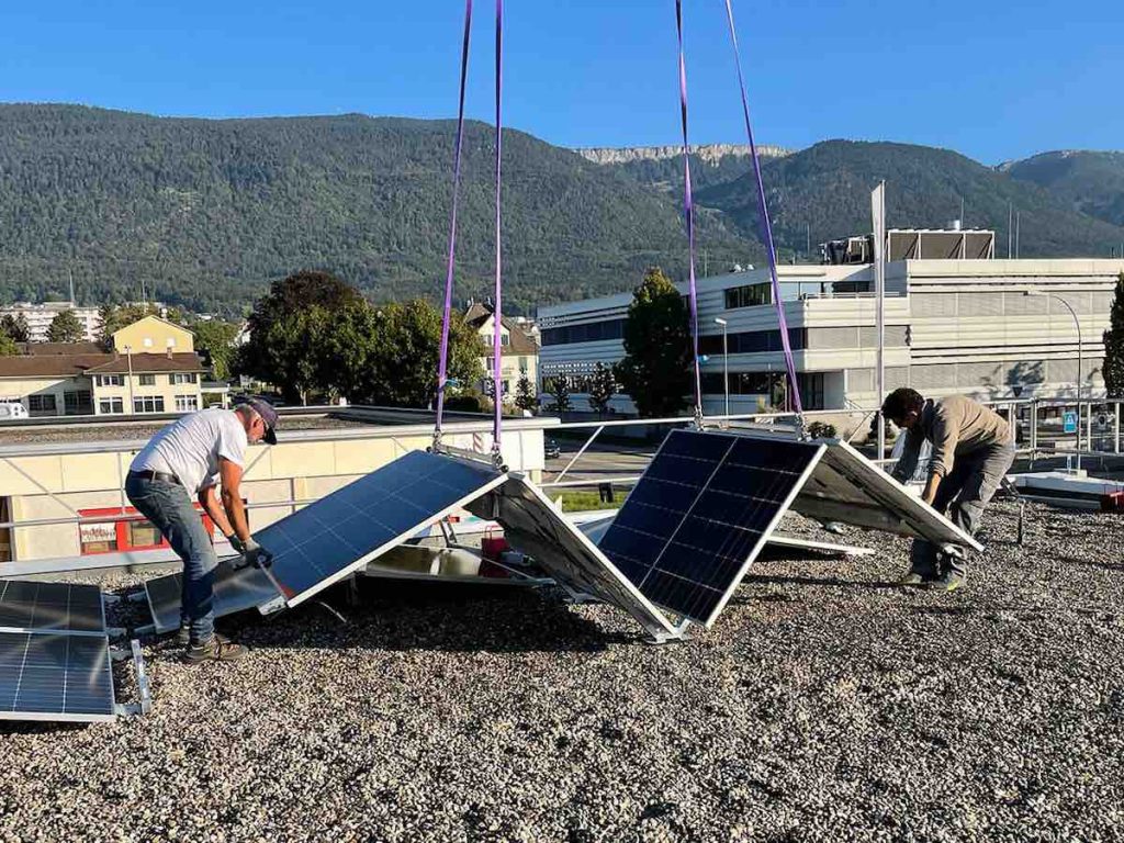 El jefe de la empresa, Beat Nyffenegger, recuerda: «Cubrimos todo el tejado en un día y medio. Con un sistema de instalación convencional habríamos tardado dos semanas«.