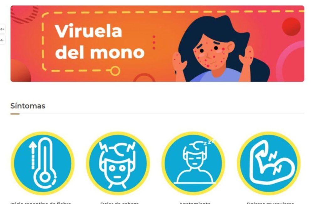(25 DE JULIO, 2022).- Este lunes la Secretaría de Salud publicó un segundo Aviso Epidemiologico y activó el portal de internet sobre viruela símica en viruela.salud.gob.mx que contiene información sobre síntomas, medidas preventivas, qué hacer en caso de que una persona esté contagiada y ligas de interés.