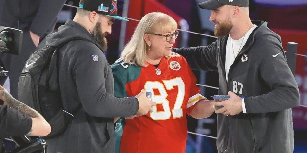 Con el corazón dividido, Donna verá este domingo en el State Farm Stadium de Glendale a sus hijos Jason Kelce (Eagles) y Travis Kelce (Chiefs) convertirse en los primeros hermanos de la historia de la NFL que compiten uno contra otro en un Super Bowl.
