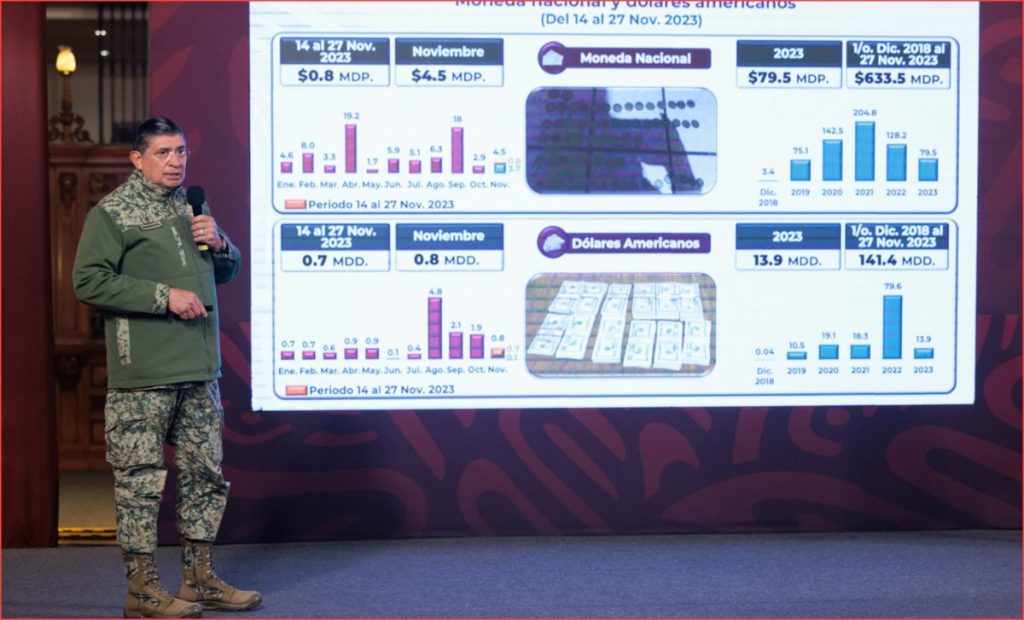 Por otro lado, destacó el decomiso superior de 8 mil kilogramos de fentanilo desde el comienzo de la actual administración federal. En lo que va de 2023, confiscaron 2 mil 178.94 kilogramos de este opioide sintético altamente dañino. También evitaron la venta de 544 mil 807.8 kilogramos de metanfetaminas del 1° de diciembre de 2018 al 27 de noviembre.