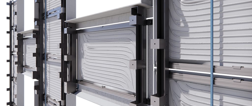 Como fuente de calor de baja temperatura para las bombas de calor, los elementos de fachada de flujo pueden ser una alternativa silenciosa y visualmente atractiva a las unidades exteriores de aire-agua de las bombas de calor.