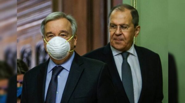 Serguéi Lavrov, ministro de Relaciones Exteriores de Rusia, y Antonio Guterres, secretario de la Organización de Naciones Unidas (ONU), convocaron...