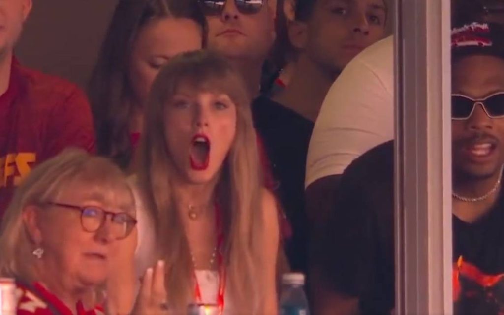 Fue en la primera media hora del juego cuando Kelce anotó un touchdown y un segundo después, las cámaras del estadio lograron captar a Taylor en plena celebración junto a Donna Kelce, la madre de la estrella de la NFL.