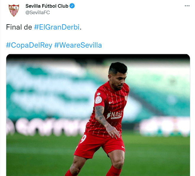 El extremo diestro de Hermosillo saltó al césped del estadio Benito Villamarín en el minuto 67, en sustitución del delantero Rafa Mir, en la reanudación del duelo copero entre los eternos rivales sevillanos, después de que fuera suspendido el sábado en el minuto 39 al ser alcanzado en la cabeza el sevillista Joan Jordán por una barra de PVC lanzada desde la grada de Gol Sur.