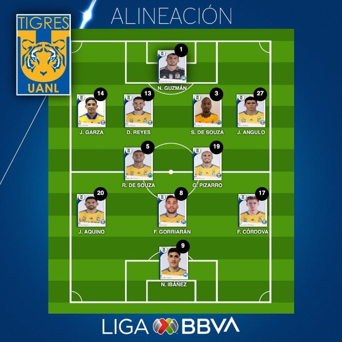 Así jugará esta noche los Tigres de la UANL. André Gignac no se encuentra en la alineación por lesión.
