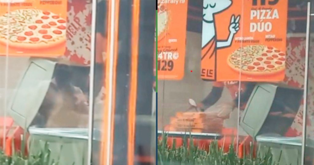 En el clip de video captado por algún usuario que estaba afuera de uno de estos locales se puede ver a un empleado “pepenando” en el bote de basura para “rescatar” las cajas ya utilizadas para luego acomodarlas en una de las mesas del lugar con la clara intención de volver a darles uso.