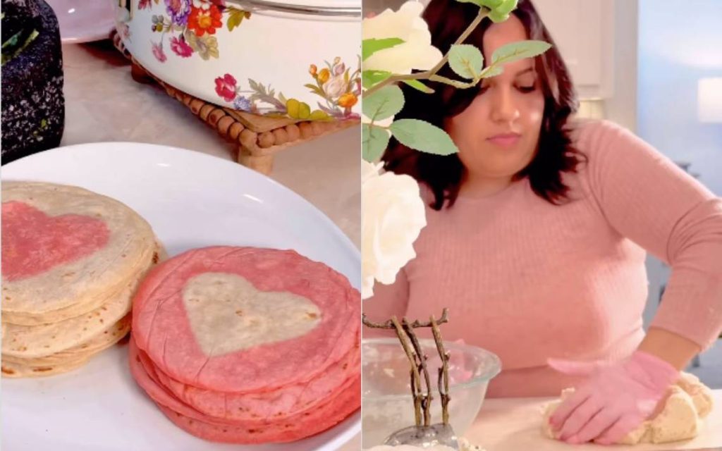 La famosa cocinera, repostera y decoradora Stephanie Padilla en su perfil de Instagram @blissfulhomedecor nos hace una sugerencia verdaderamente atractiva para poder sorprender a nuestra pareja y si se trata de nosotros los mexicanos, nos queda como anillo al dedo, pues ¿quien se pudiera resistir a unas tortillas de maíz rosas?, con un corazón en el centro, para preparar nuestros taquitos preferidos.