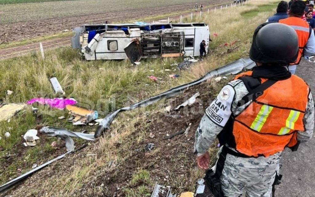 El presunto exceso de velocidad y hacer una llamada telefónica al conducir provocó que el minibús proveniente de Puebla con dirección a la capital de Tlaxcala chocara contra la barra de contención, para volcar alrededor de 100 metros de distancia -aproximadamente cinco giros-, quedando destrozada la unidad.
