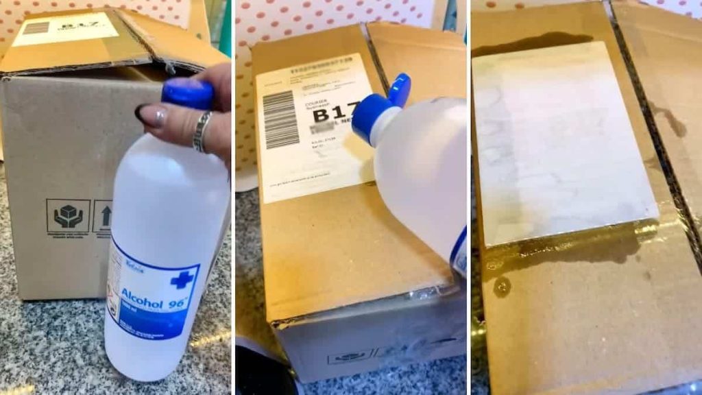 El alcohol tiene propiedades que disuelven la tinta utilizada en la impresión de los datos en estas etiquetas. Esto significa que podemos eliminar rápidamente toda la información personal antes de desechar cualquier paquete o caja.