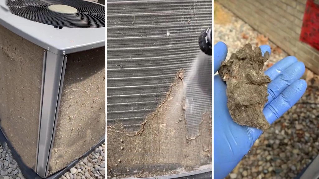 Entonces, ¿cómo se limpia la unidad de aire acondicionado? DIYDadQ (@diydadq) en TikTok muestra que es fácil y se puede hacer con una manguera y algo de agua. El TikToker utiliza una manguera para rociar la suciedad, que sale fácilmente con la presión del agua. Es importante tener en cuenta que en algunos casos es necesario limpiar la unidad desde el interior hacia el exterior, pero pulverizar en ángulo por encima de la suciedad permite que el agua se lave y no se introduzca en la unidad. Al final de la limpieza, sólo hay que volver a atornillar las tapas a cada lado.
