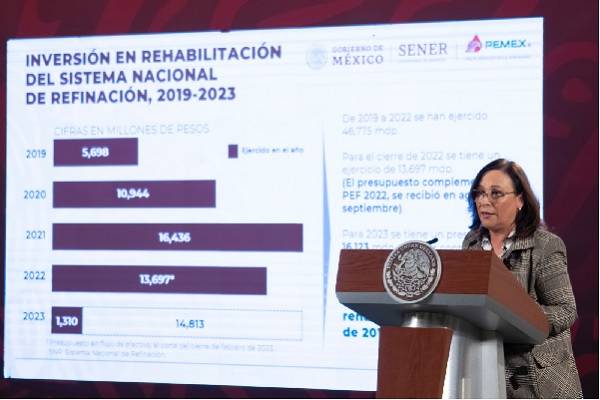 Con ello, se estarían destinando 62 mil 898 millones de pesos para la rehabilitación del Sistema Nacional de Refinación, detalló.