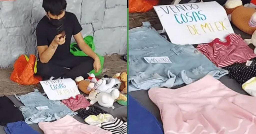 Entre las cosas que están a la venta, se alcanzaban a distinguir faldas, peluches, pantalones e incluso hasta ropa interior, señal que la pareja ya llevaba rato estando juntos y cuando terminaron habían muchas cosas en la casa de él, mismas que ahora aprovechó para vender a precio de remate.