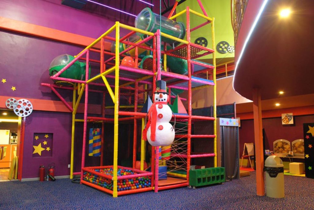 En las zonas de juegos, hay un área para bebés de cero a tres años, además, un laberinto, circuito de carritos Ezy roller y Joycar, pared de escalar, salón de princesas, arcade de juegos con futbolito, mesa de jockey, X Box y basketball; también un camerino con disfraces para todas las edades (incluso adultos), un área de arte con caballetes y un cine, que da nombre a este lugar.