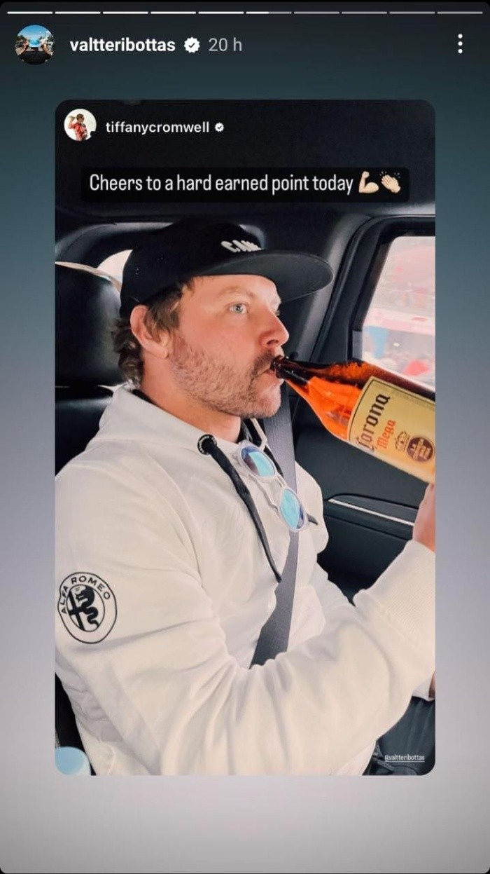 Fue a través de su instagram donde Valtteri Bottas compartió una storie donde se le ve tomándose una caguama para quitarse la sed, tras el intenso calor que se vivió en el Gran Premio de México.