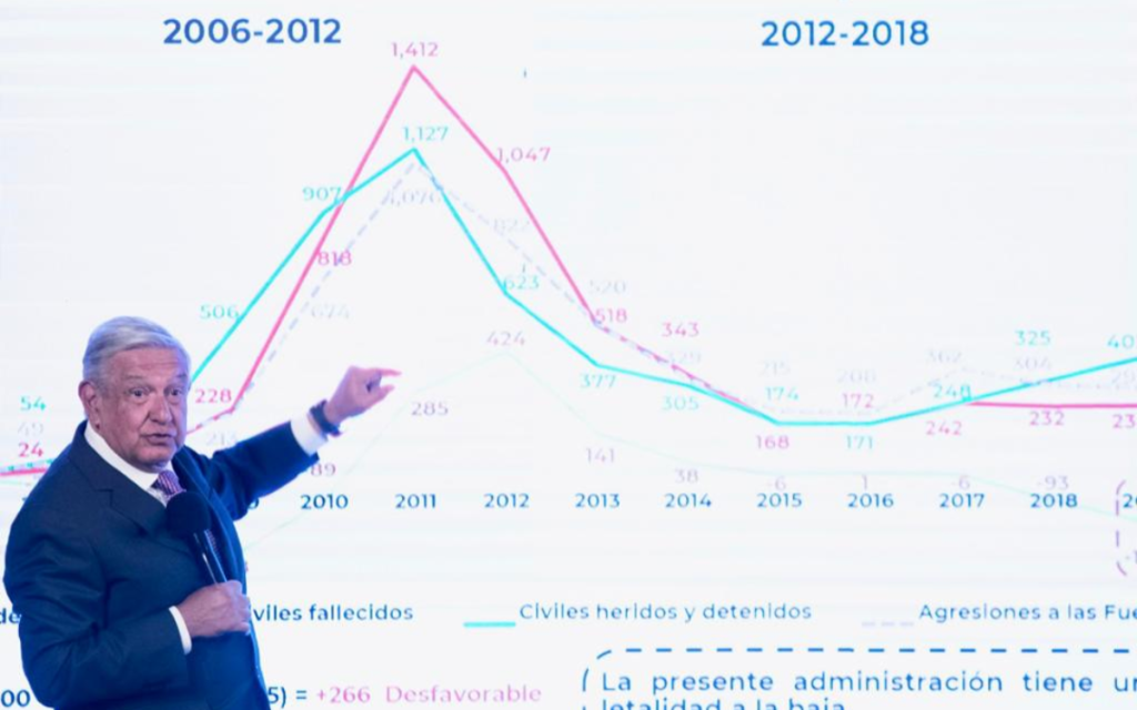 El presidente Andrés Manuel López Obrador aseguró que su estrategia de seguridad va muy bien, a pesar de que en lo que va de su administración hay más homicidios dolosos que durante en sexenio de Felipe Calderón.