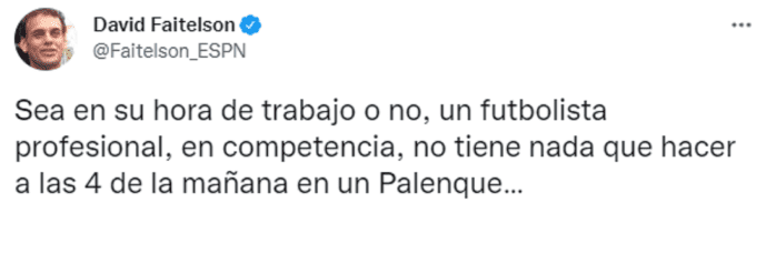 Faitelson decidió responder el tuit del campeón del mundo sub-17, dejándole en claro que un futbolista en competencia no debe estar a las 4 de la mañana en un palenque, esto a pesar de que estuviera en su tiempo de descanso.