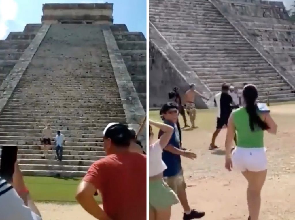 Video 🎥 Atacan a otro turista extranjero que se subió a pirámide en Chichén Itzá