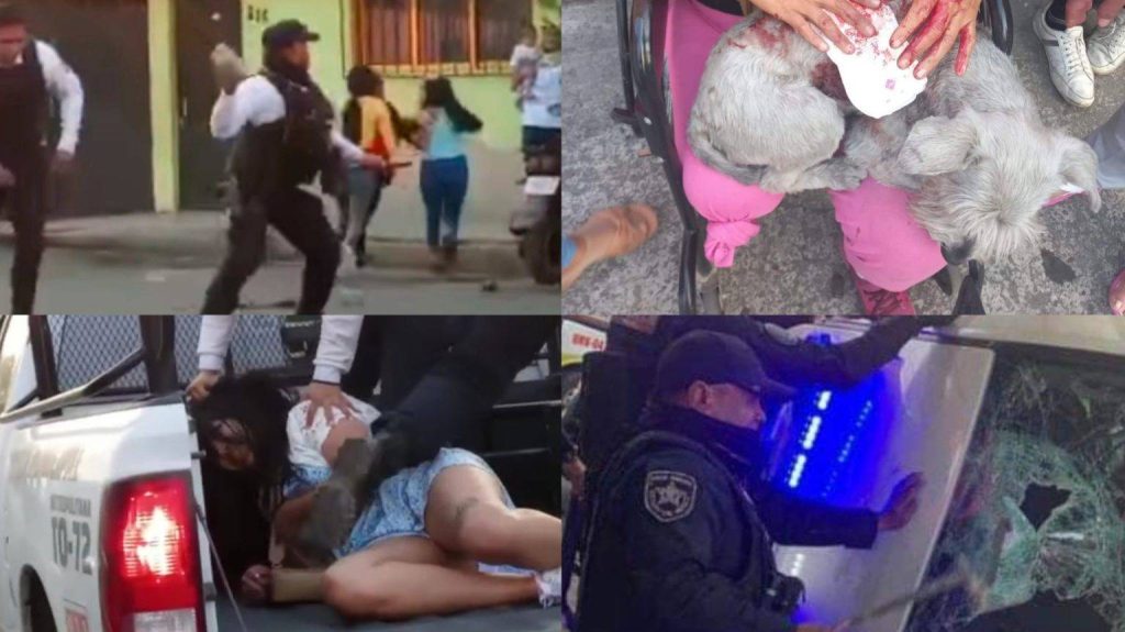 A través de grabaciones que circulan en redes sociales, se puede ver al menor siete patrullas y decenas de policías; mientras que del otro bando, mujeres en su mayoría lanzan algunas piedras y tabiques.