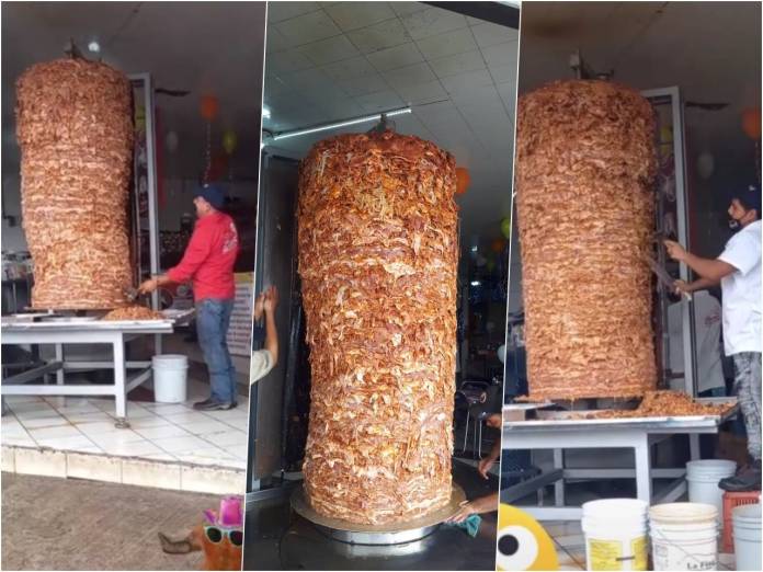 De acuerdo con información de la taquería, el trompo al pastor viral fue hecho con una tonelada de carne.