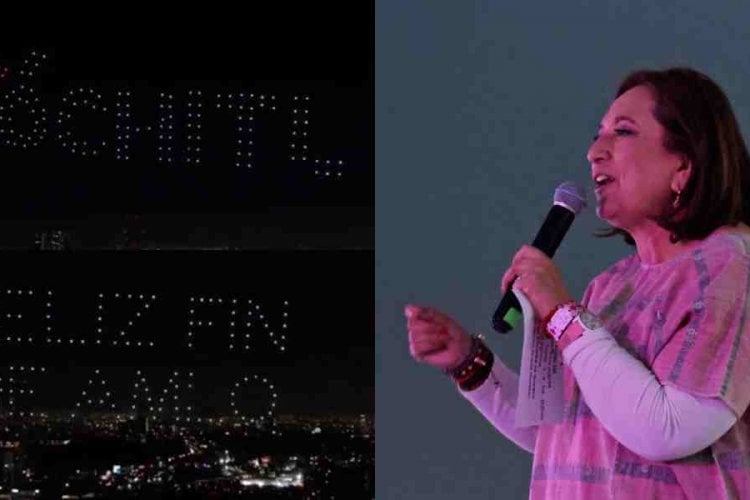 Xóchitl Gálvez Ruiz, precandidata presidencial de Fuerza y Corazón por México, hizo volar unos drones en la Ciudad de México, los cuales formaron diversas frases desde su nombre, una una «X» y hasta un “¡Feliz fin de AMLO!”, rumbo a las elecciones de 2024.
