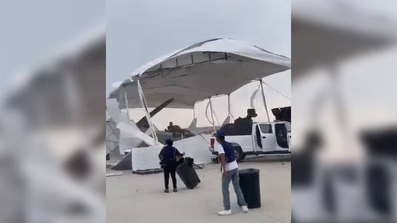 En un video, compartido a través de redes sociales, se observa cómo la carpa del evento da al menos un giro en el aire y cae contra algunos visitantes y personal logístico que trató de sujetar una lona, donde se exhibían las marcas de los participantes en el evento.