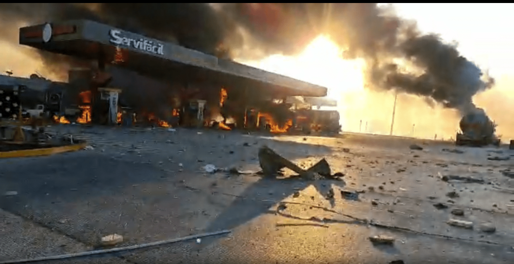 El accidente se registró hacia las 8:00 horas de este sábado. De acuerdo con reportes preliminares una fuga de gas en la pipa que se abastecía de combustible fue la que provocó la explosión en la estación de servicio.