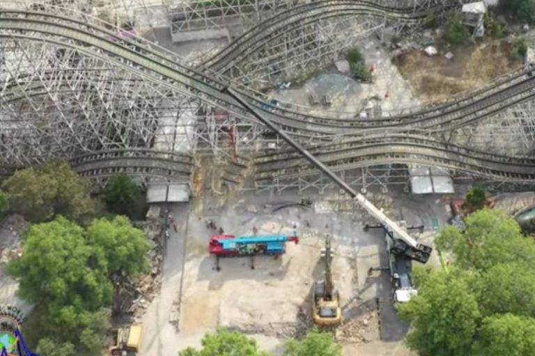 Mediante un video se compartió el momento en el que los trabajadores comenzaron a cortar y retirar las vías de madera que conformaban la Montaña Rusa.