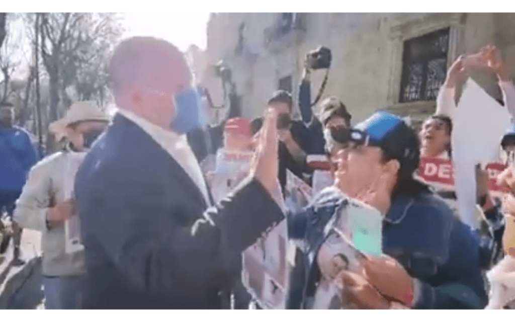 A través de un video que circula en redes sociales, se puede apreciar al mandatario de Movimiento Ciudadano (MC) caminar hacia un grupo de mujeres que protestaban por la desaparición de sus hijos.