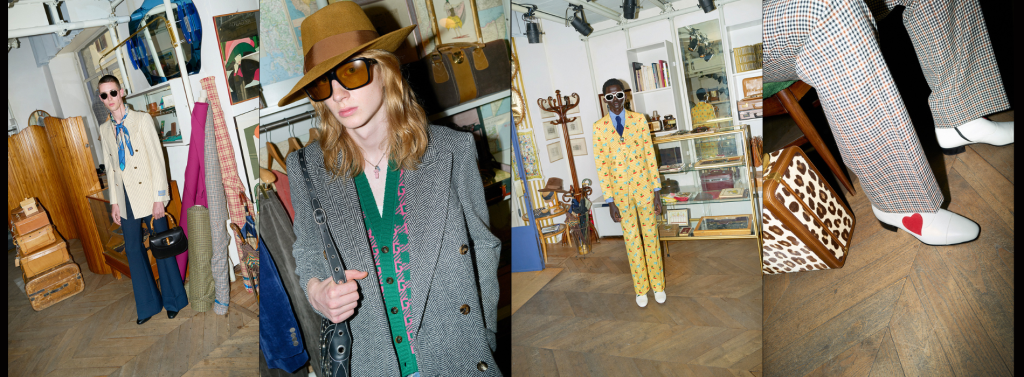 Según el comunicado, la colección es una versión moderna de la estética setentera de Mr. Fish, o sea una ecléctica selección de trajes sastres y blazers con estampados de cereza y borregos combinados con pantalones de cuadros, chalecos de rayas y sombreros. Muy al estilo Harry Styles, las piezas tienen como objetivo ofrecer una nueva versión de la elegancia masculina, reviviendo la sastrería tradicional inglesa, diseñada para actuar como heraldo de nuevas visiones de la belleza.
