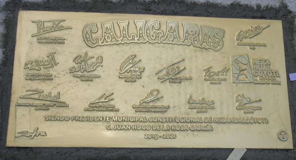Y es que en 2017, como parte del Festival “Neza Ciudad para Todos”, la banda cordobesa se hizo presente y luego de 4 años al alcalde se le hizo muy bonito reconocerles que aceptaron tocar para ellos y haciendo una magnifica distribución de los recursos públicos mandaron colocar una placa en su ¿honor? que ayer fue develada por los integrantes de Los Caligaris y el Juan Hugo de la Rosa, presidente del municipio.